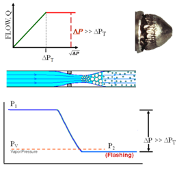 如果我們繼續(xù)減少下游的壓力,我們到達(dá)一個(gè)點(diǎn),在閥的下游壓力小于液體的蒸氣壓。