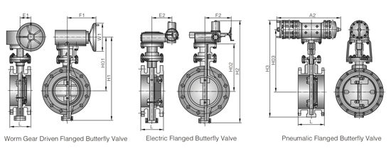| NPS | L | Worm gear actuation | Electric | Pneumatic | Weight(kg) | |||||||||||