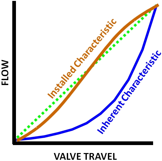 作為一般規(guī)則,與管和配件的大量系統(tǒng)(大多數(shù)情況下)是最適合等百分比閥固有特性。具有非常小的管道系統(tǒng)(如果可用的控制閥壓降基本不變,因此閥的固有特性是安裝的特性)更適合于線性固有特性的閥門。