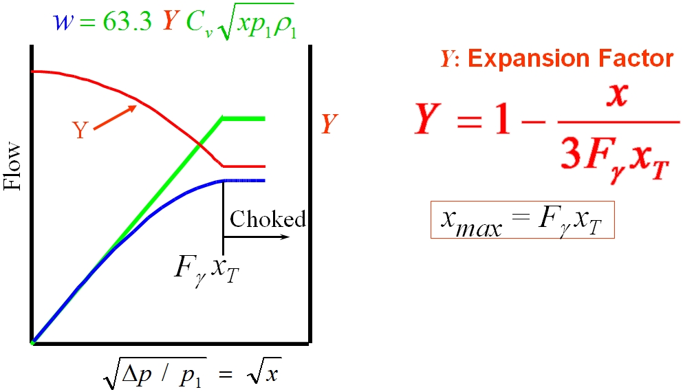 圖6。ISA / IEC氣體流量方程包括“膨脹的因素,“Y,用于補(bǔ)償在縮,縮增大密度變化。
