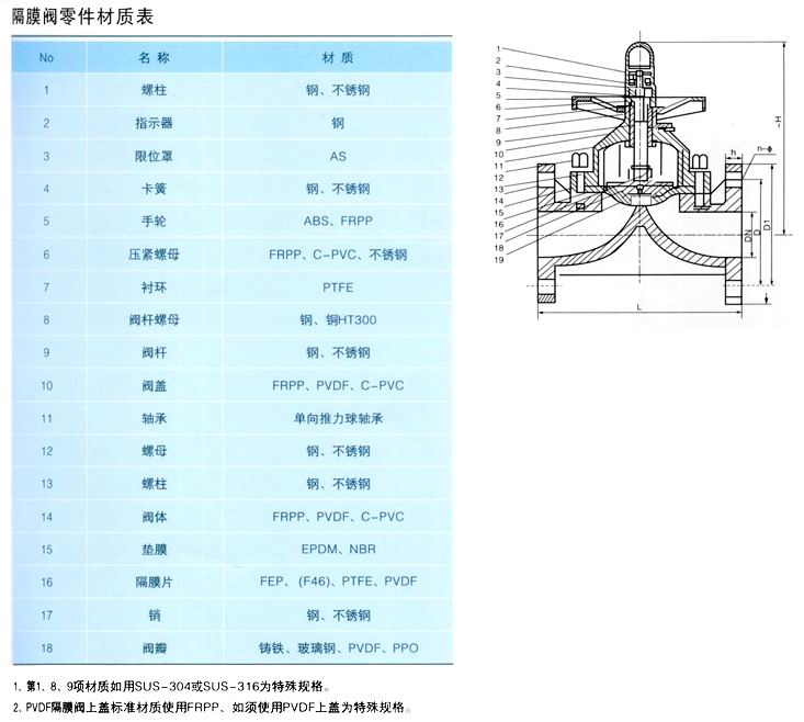 塑料隔膜閥概述: 您是不是在找"塑料隔膜閥"標(biāo)準(zhǔn),尺寸,作用,原理嗎?這里有我們?yōu)槟x的塑料隔膜閥型號(hào)、塑料隔膜閥規(guī)格、塑料隔膜閥結(jié)構(gòu)圖、塑料隔膜閥特點(diǎn)等, 盡我們所能滿足您所需求的產(chǎn)品!