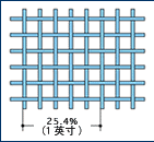 不銹鋼鋼絲網(wǎng)的規(guī)格用目數(shù)(Mesh)來表示。目數(shù)是表示鐵絲網(wǎng)孔數(shù)的單位,平紋時(shí),指 1 英寸間 1 列的網(wǎng)眼數(shù)。目數(shù)越大,網(wǎng)眼越密。但是,請注意,即使是相同目數(shù),由于線直徑不同,孔徑面積也會(huì)有差異。右圖中 1 英寸間 1 列有 5 個(gè)網(wǎng)眼,是 5 目的篩網(wǎng)。 |