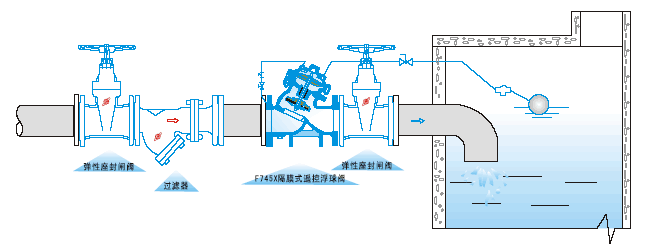 F745X隔膜式遙控浮球閥直接利用浮球?qū)чy進行液面控制,不需要其它裝置和能源,結構簡單,維護保養(yǎng)簡便,控制不受水壓影響,液面控制準確度高,密封可靠。