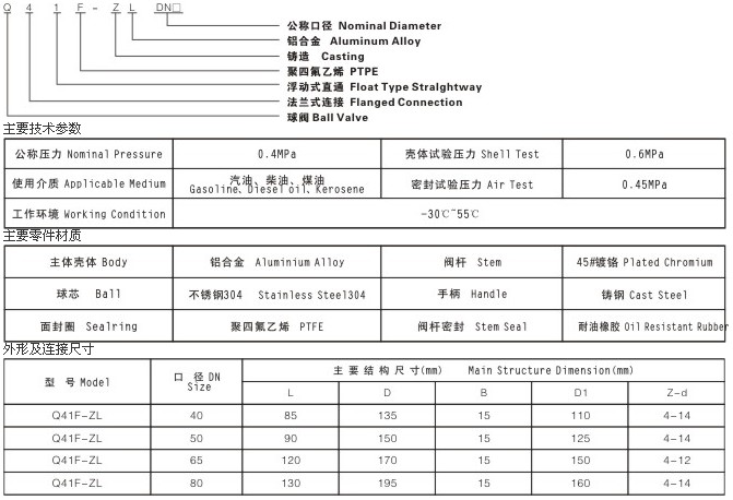 鋁合金球閥采用鋁合金殼體,不銹鋼球芯,具有材料配制合理結(jié)構(gòu)緊湊,重量輕,體積小,使用方便等優(yōu)點,設(shè)有限位和加鎖裝置,安全可靠。 用途:Q41F-ZL鋁合金球閥廣泛用于非腐蝕性液體輸送管道開閉控制(如油罐車,加油站等)調(diào)整:旋轉(zhuǎn)法蘭內(nèi)密封座可調(diào)整板桿輕重和消除滲漏,當(dāng)密封環(huán)與球面封部位有損傷時,要修正其密封面或者更換。