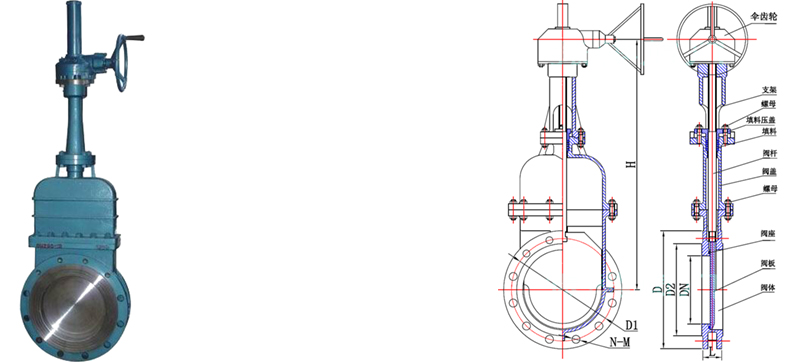 傘齒輪暗板刀型閘閥安裝尺寸以及外形圖