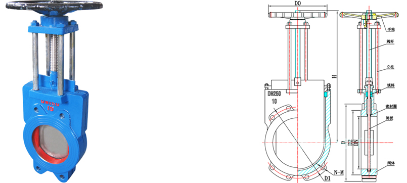 Material properties: body: cast iron;Ram: stainless steel;Stem: 2 cr13;Packing: ptfe.The body sealing ring: synthetic rubber or ptfe