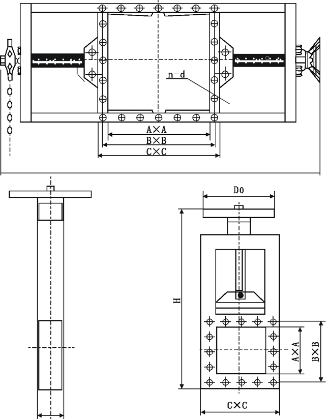 電動方型插板閥安裝尺寸以及外形圖